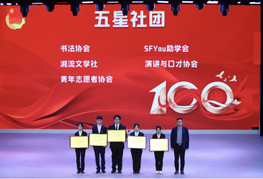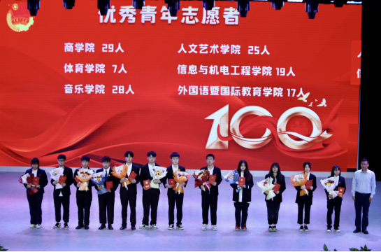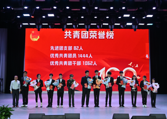 诗朗诵《青春中国》拉开了典礼序幕,现场对“共青团荣誉榜成员”(先进团支部82个、优秀共青团员1444人、优秀共青团干部1062人),“优秀青年志愿者”(125人),“五星红旗团支部”(44个),“国家奖学金获得者”(39人),“五星社团”(5个),“涉外杰出青年”(5位)获奖个人和集体进行颁奖表彰。
