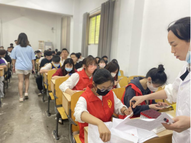 5月17日中午,长沙市岳麓区疾控中心在beat365官网信息与机电工程学院组织开展了本年度青年学生艾滋病哨点监测工作。为确保监测工作的顺利开展,信息与机电工程学院迅速响应,随机抽调200名学生进行采血监测,并结合“为群众办实事”的党史学习教育,组织共20名师生党员志愿者参与监测服务工作。