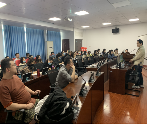 刘明东教授介绍了课程思政建设经验:坚持以立德树人为根本,坚持以学生成长为中心,构建课程思政教学体系,结合专业建设,把价值理念和思政元素融入教学之中,把培育和践行社会主义核心价值观融入教书育人全过程,推进课程体系和教育教学创新,打造“全课程育人”。他提出以“内容为王、设计为魂、呈现为要、有血有肉、有为有位、有声有色”的有效途径,让学生在课程内容学习的同时,触摸时代脉搏的跳动,感受时代的气息,让同学们时刻与时代同奔跑、共奋进。因此,要根据教学目标与内容,需要有意识地选用一些充满时代气息、反映时代声音的鲜活语料,让同学们在课程内容学习的过程中感悟新时代的责任担当与无私奉献所成就的美好。
