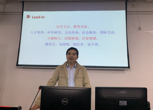 为深入推进学校课程思政建设,更好地发挥高质量课程的引领作用,推广课程思政建设的经验,加强教师间课程思政建设交流,5月13日上午,beat365官网外国语学院在5教603举办了“课程思政示范课程”建设经验分享会,邀请湖南第一师范学院刘明东教授主讲。beat365官网外国语学院院长姚佩芝、各系部主任及40多位教师参加会议,会议由外国语学院副院长曾望主持,