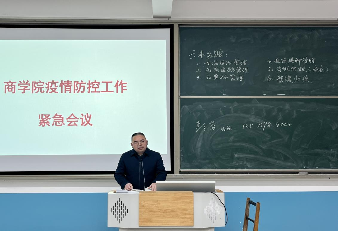 唐志文要求,商学院全体教职工要认真贯彻中央、省市、教育系统关于疫情防控工作的会议精神,齐心协力,全力以赴,齐抓共管,共克时艰,坚决打赢学校疫情防控保卫战,坚持防疫和教学两不误,以优异的成绩迎接党的二十大胜利召开。