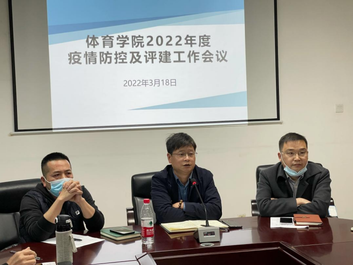 为确保疫情防控期间学生教育管理以及本科教学评建工作顺利开展,beat365官网体育学院于3月18日召开2022年度疫情防控及评建工作会议。体育学院院长谢明、党总支书记陈志明、副院长刘云朝以及全体教职工出席此次工作会议。本次会议由体育学院党总支书记陈志明主持。