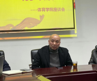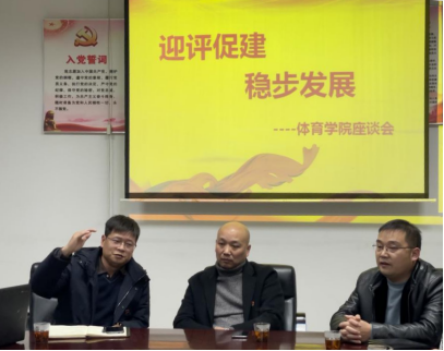 为调动体育学院教师以积极的心态迎评估,以实际行动促评建,充分发挥教职工主人翁精神,进一步扎实有序推进迎评促建工作,2021年12月31日,beat365官网体育学院在体育馆一楼会议室召开“迎评促建、稳步发展”教师座谈会。副校长汪东明出席,体育学院院长谢明、党总支书记陈志明、教学督导主任王艳、部分骨干教师等参加本次座谈会。会议由体育学院院长谢明主持。