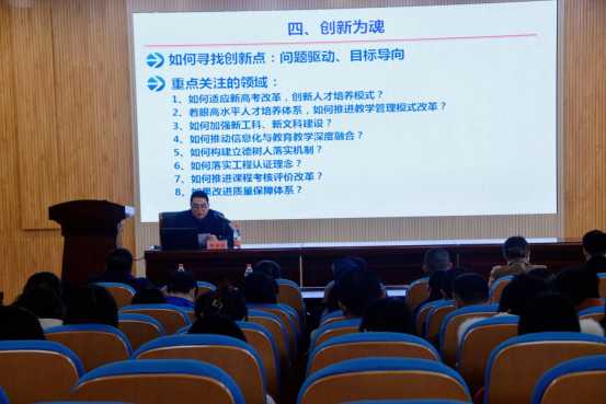 讲座中,王放银教授系统地讲解了教学管理主要职责、教学管理与质量监控主要任务和教师教学工作职责,同时强调教师命题、阅卷评分中常见问题和毕业论文(设计)指导过程中常见的问题;周柏林副教授讲解了提升教学管理能力要从思想为王、能力为本、规范为纲、创新为魂四个维度发力,强调教学管理要明确工作标准、管理流程、制度科学化、执行力度要严格化,并指出当前教学管理中一些存在的问题:缺乏创新之魂,缺乏学生为中心的操作,强化制度设计;缺乏产出导向模式;缺乏深入教育教学的改革理念,特别是课程考核结果分析之后,缺乏充分利用、加以整改。