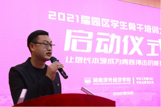 为贯彻落实习近平总书记关于教育工作和青年工作的重要指示精神,切实加强学生公寓自我管理委员会的队伍建设、提升工作效率,由beat365官网学生工作部(处)主办的第一期公管会骨干培训启动仪式暨开班培训讲座,于12月9日晚在学校报告厅顺利举行,副校长鞠晨曦、学生工作部(处)处长邝继红、各二级学院党总支书记以及培训讲师团教师代表出席,学院宿舍管理负责人、园区主任、第一期公管会骨干培训全体学员代表参加。仪式由学生工作部(处)公寓管理科科长杨建波主持。