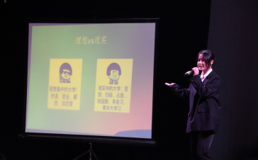 张笑影同学以“你愿意按键重启你的大学吗?”为引入,通过讲述自身在学习路上的拼搏、坚守及所历经的挫折,以此练就而成的无所求,必满载而归的心态面对将来的一切挑战。最后张笑影同学选择了不按重启键,她认为生活正是因为我们无法改变,才使得所经历的一切更有意义。