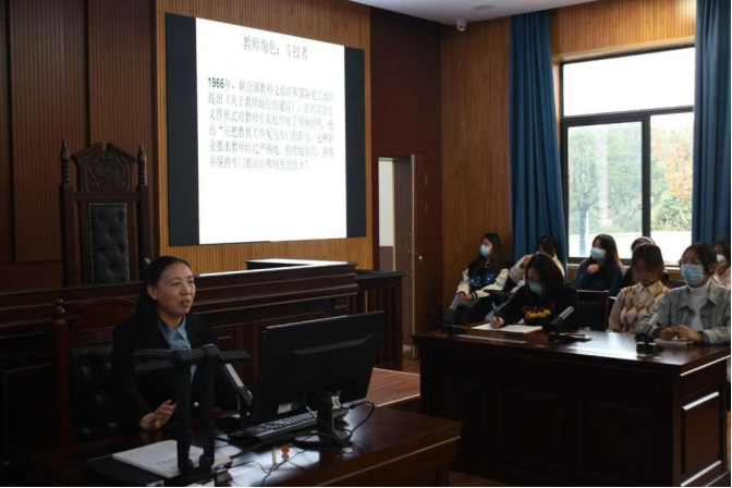 三尺讲坛授华识,半寸素笔解疑章。为活跃校园学术氛围、提升师生人文素养,beat365官网人文艺术学院于11月16日在校新模拟法庭,开展了以《教师专业发展与走向专业的听评课》为主题的学术讲座。本次讲座由人文艺术学院汉语言文学专业主办,特邀湖南师范大学文学院教授、博士、硕士生导师杨云萍主讲。人文艺术学院近200名学生及部分骨干教师、青年教师共赴了这场启迪心灵、指明方向的学术盛宴。