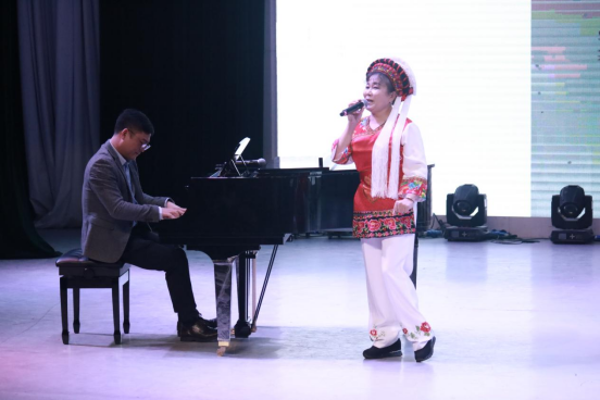 活动由课程负责人彭翔主持。黄道英详实地介绍了桑植民歌的文化背景、演唱要点,同时期望学院师生能够更好的了解民族文化,将优秀的湖湘传统文化、红色基因,很好的传承下去。在讲座中,黄道英带领师生一字一句的学习了山歌、小调、花灯等曲牌的桑植民歌,强调了民歌演唱中的方言、衬词、行腔、节奏等方面的演唱要点;并带领现场师生学习了《马桑树儿搭灯台》、《滴格调》、《四季花儿开》、《太阳出来晒山坡》等不同风格的桑植民歌。
