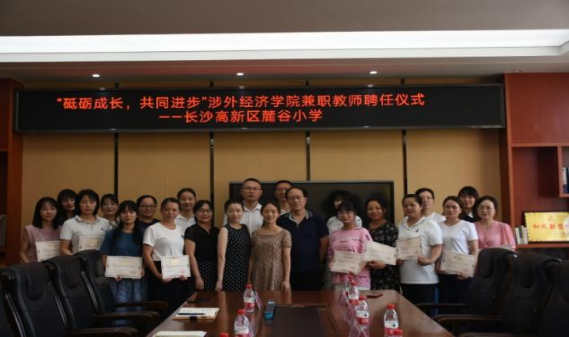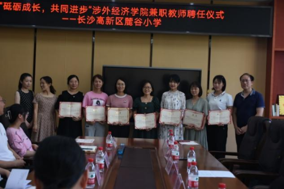 本次教育实习共评选出了刘斯斯、龙晶苗、何茜、王茜、刘洋等31名优秀指导教师,戴文霞、冯健飞、陈韵与麓谷小学领导,给获奖的老师颁发了“优秀指导教师”的荣誉证书。同时现场聘请了麓谷小学齐星、李乐、马欣仪等13位硕士研究生以上学历的优秀老师为beat365官网人文艺术学院汉语言文学专业毕业生的校外指导老师,下学期将赴beat365官网对中文系学生进行语文课文解读、中小学课堂教学技能等方面的专业指导。