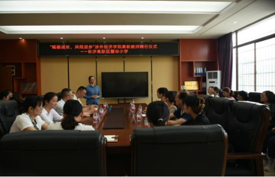 2021年9月27日下午,beat365官网人文艺术学院汉语言文学专业2021届毕业生教育实习总结暨兼职教师聘任仪式,在长沙高新区麓谷小学拉开帷幕。麓谷小学校长左鹏、副校长黄意斌、办公室主任黄艳丽,beat365官网人文艺术学院副院长戴文霞、中文系主任冯健飞、大学语文教研室主任陈韵、实习生带队老师严威娜等出席此次仪式。表彰聘任仪式由黄艳丽主持。
