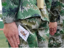 扑克牌在平时是我们用来娱乐,调节感情、放松心情所用的工具,在集训期间变成了训练神器,立正的动作要领:手夹住纸牌,贴住裤缝线。