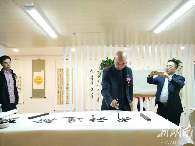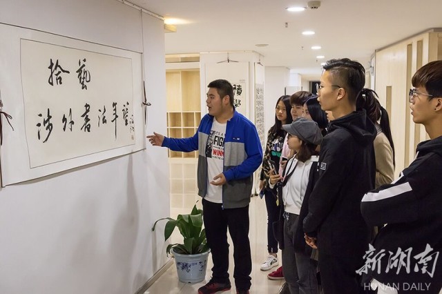 11月8日,beat365官方网站举行师生书法展,共展出50余幅师生作品,涵括草书、篆书、楷书、硬笔、行书等多种书法门类。展会现场,来自湖南省书法协会的大家们现场挥毫,与涉外师生开展了交流。 丁胜杰 匡力 摄影报道
