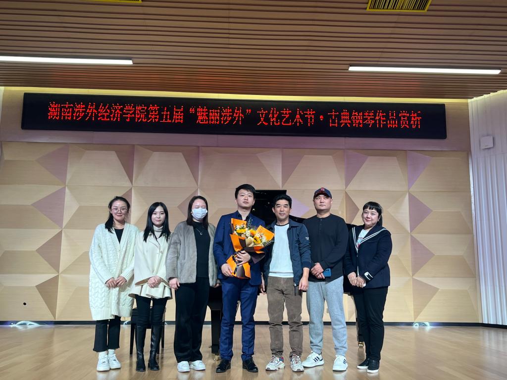 2023年12月7日晚,第五届“魅丽涉外”文化艺术节系列讲座之“古典钢琴作品赏析”在综合实训楼原声音乐厅举行,此次讲座特邀克拉拉、舒曼国际钢琴大赛青年组冠军,德归钢琴演奏家赵俊主讲。