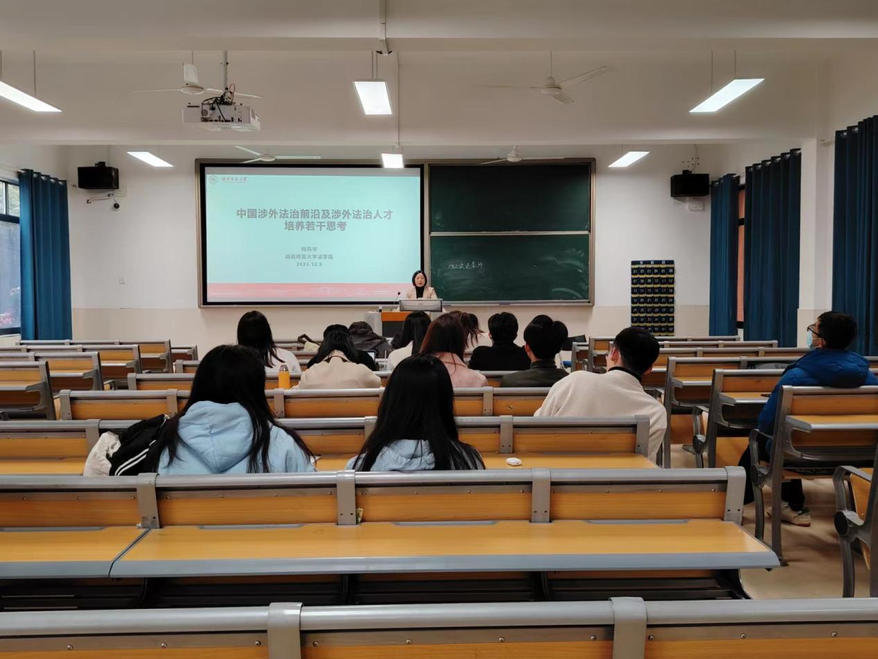 为落实育人育才培训理念,进一步提升青年教师教育教学水平、专业素养和教学实践应用能力,确保教学质量,12月8日下午,beat365官网人文艺术学院法律系在第十二教学楼209教室举办了以“中国涉外法治前沿及涉外法治人才培养若干思考”为主题的培训,特邀湖南师范大学法学院副院长何燕华教授主讲。
