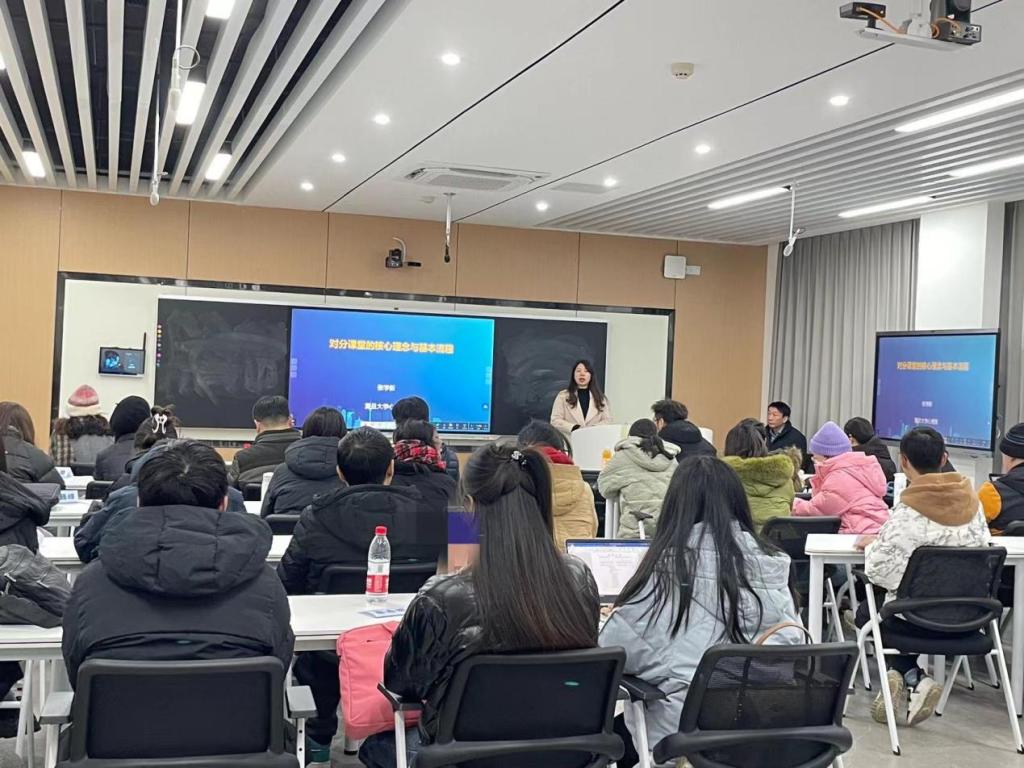 12月19日,为突破传统教学模式,培养核心素养,让批判性思维、创造性思维、沟通与合作能力在日常教学中得到贯彻,人力资源处(教师教学发展中心)邀请复旦大学心理系博士生导师、对分课堂教学新模式创始人张学新教授、南阳理工学院外国语学院解靓副教授在实训楼 5 楼开展为期一天的“对分课堂”工作坊培训。为使学员更好地将“对分课堂”模式用于教学实践,针对学科类别分为两个班,学员分别来自信息与机电工程学院与外国语学院的一线教师,并均由系主任带队,本次培训由人力资源处副处长彭伊凡主持。