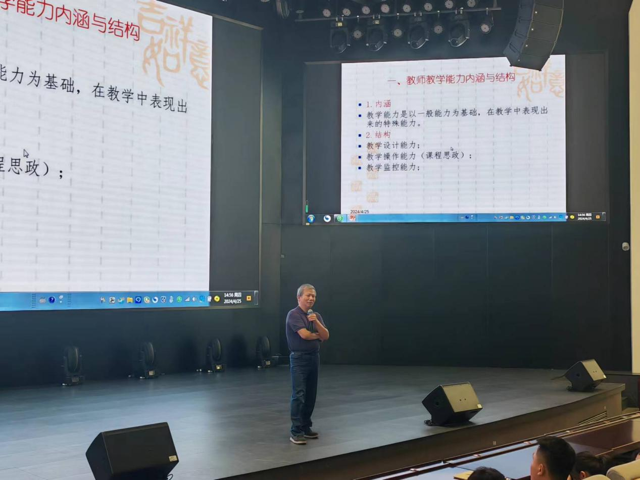 姚教授以其深厚的学术功底和丰富的教学经验,从多个方面对青年教师教学能力的提升进行了深入剖析。他首先阐述了教师教学能力的内涵与结构,帮助教师们明确自身在教学过程中的角色定位和能力要求。接着,姚教授详细解读了一流课程建设的价值,并指出了其对教师教学能力提出的更高要求。在谈到教师教学能力的理论基础时,姚教授引经据典,为教师们提供了丰富的理论支撑。同时,他还结合实际案例,深入分析了当前教师教学能力的现状以及影响能力提升的因素。在此基础上,姚教授提出了针对性的提升路径与策略,为青年教师指明了提升教学能力的方向。