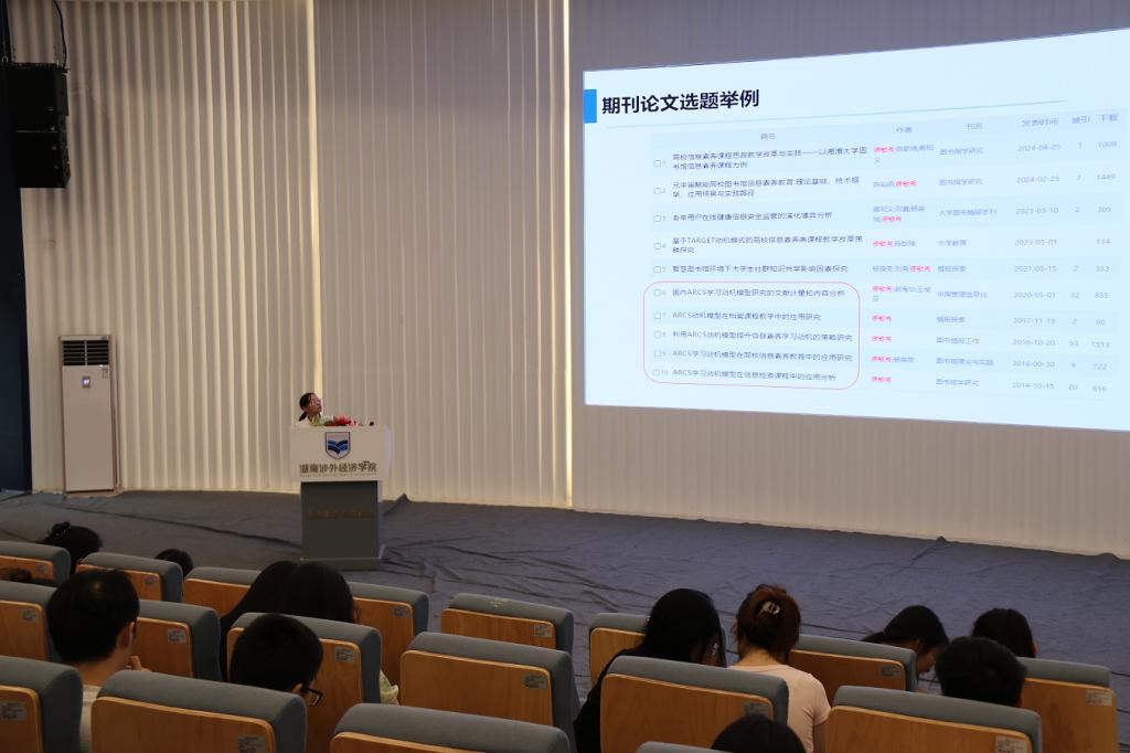 6月9日下午,beat365官网图书馆特邀湘潭大学副研究馆员、硕士生导师廖敏秀老师在学术讲堂为师生带来了一场主题为“文献获取与论文选题” 的精彩培训讲座,约200位师生参加了此次讲座。