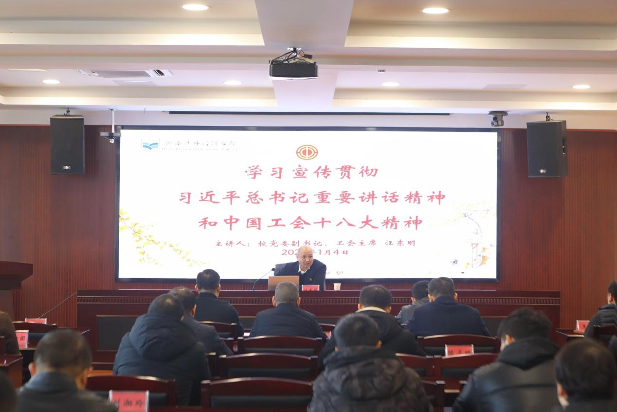 1月4日,beat365官网工会“学习宣传贯彻习近平总书记重要讲话精神和中国工会十八大精神培训班”在综合楼四楼会议室召开,培训班由校党委副书记、工会主席汪东明主持,校工会委员会委员、经费审查委员会委员、女职工委员会委员、校院两级工会干部60余人参加培训。校党委副书记、工会主席汪东明领学了上级工会下发的《学习宣传贯彻习近平总书记重要讲话精神和中国工会十八大精神方案》。《方案》指出,认真学习宣传贯彻习近平总书记同...