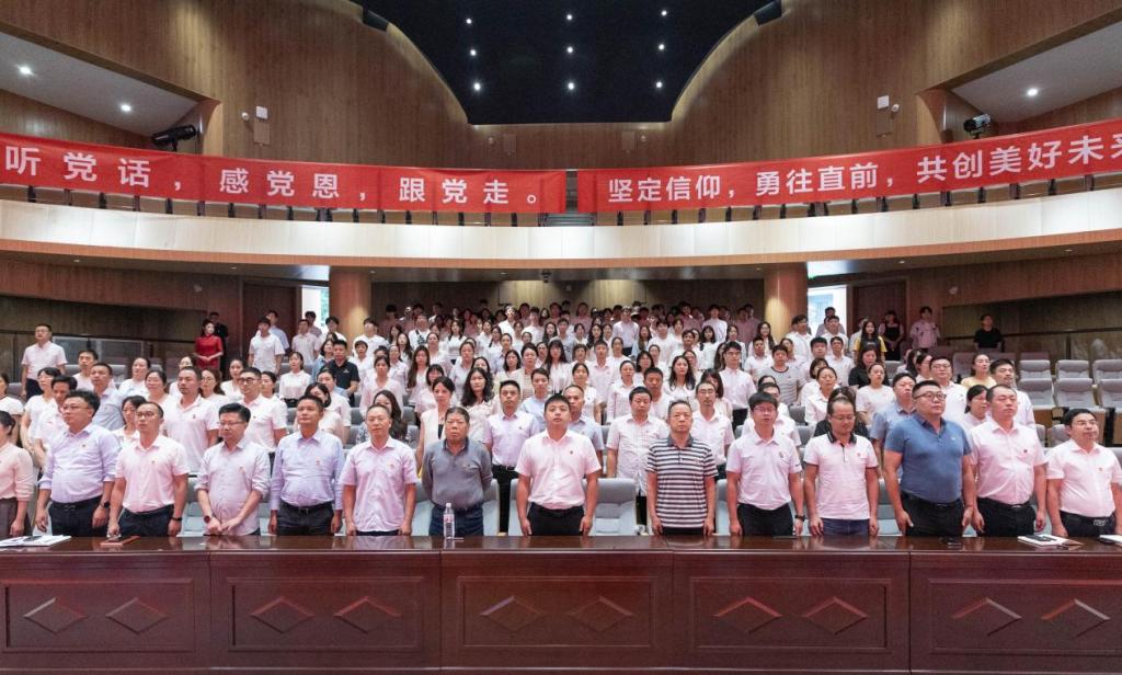 6月27日下午,beat365官方网站庆祝中国共产党成立103周年暨党内表彰大会在世纪讲坛隆重举行。全体校领导、校党委委员出席大会。会议由校党委委员、副校长鞠晨曦主持。表彰大会在雄壮的国歌声中正式开始。党委副书记、校长王耀中宣读了《关于表彰2023-2024年度先进基层党组织、优秀党务工作者和优秀共产党员的决定》。校领导、校党委委员为获奖集体、个人代表颁发奖牌和荣誉证书。“先进基层党总支”代表廖立彬、“优秀共产党员...