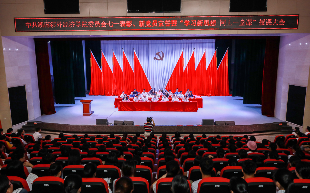 (大会会场)7月6日,全校“七一”表彰、新党员宣誓暨“学习新思想 同上一堂课”授课大会在音乐学院音乐大厅举行。在校的校党委委员,党委工作部门负责人,各党总支书记、副书记及党务干事,各直属党支部书记,本学期新发展党员,本次受到表彰的师生党员,党校第39期入党积极分子培训班优秀学员参加会议。(校党委书记柴世钦主持会议并作专题报告)校党委书记柴世钦主持会议,他代表校党委向全校党员致以节日问候,期望大家不忘...