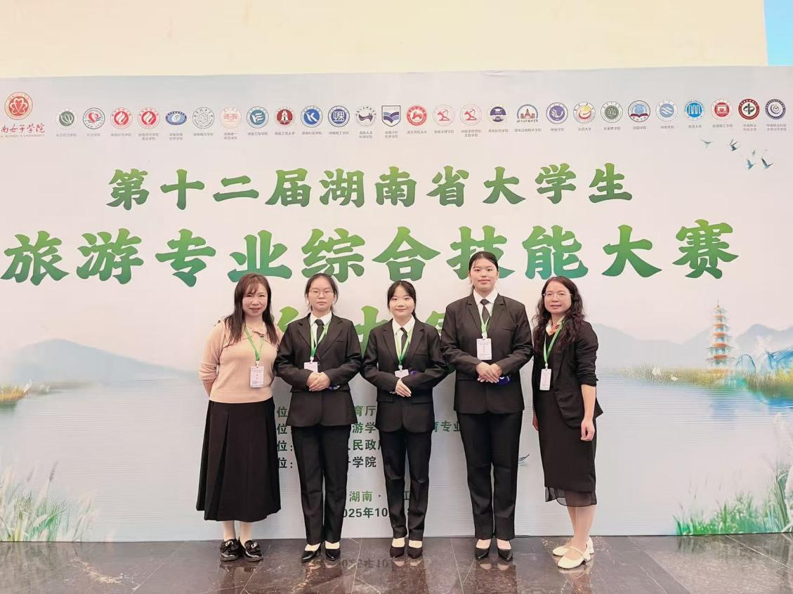近日,第十二届湖南省大学生旅游专业综合技能大赛决赛在沅江市举行。经过激烈角逐,beat365官网代表队表现优异,共获一等奖1项、二等奖1项、三等奖4项,获奖数量与等级均创beat365官网参赛以来新高,实现历史性突破。本届大赛由湖南省教育厅主办,旨在提升旅游类专业学生的综合实践能力与创新水平。beat365官网高度重视此次赛事,由商学院牵头组织,整合旅游管理、视觉传达设计、数字媒体艺术、市场营销等多个专业资源,组建跨学科参赛团队。团队围...