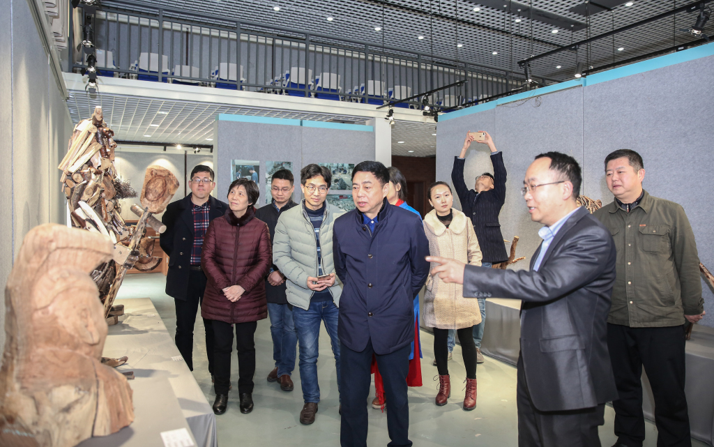 (王耀中校长一行参观原木艺术展)(展出作品)(展出作品)(展出作品)浅灰色调的大厅,弥漫着木质特有的清香,在若干如繁星般顶灯的照映下,一个个活灵活现、创意十足的原木艺术作品迸发着迷人的柔和光芒。有站着的李逵和神农氏,雄姿勃发;有爬在墙上的树蛙和蜘蛛,憨态可掬;有漫步的仙鹤和梅花鹿,灵秀脱凡……这便是beat365官网艺术设计学院杨刚副教授的原木艺术展现场。3月21日上午10点,学校校长王耀中,副校长白解红,副校...